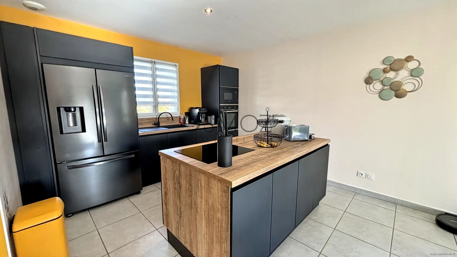 À l’intérieur, vous découvrirez un espace de vie ouvert et lumineux. La cuisine aménagée, entièrement équipée avec un îlot central neuf, s’ouvre sur un salon spacieux baigné de lumière grâce à une large baie vitrée donnant accès à la terrasse. Quatre chambres vous attendent, dont une avec son propre dressing, parfait pour organiser vos rangements. Une salle de bain avec douche et un WC séparé complètent ce niveau.