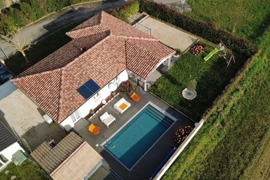 Sur un terrain de 600 m² soigneusement arboré, cette maison de 110 m² habitable offre un cadre de vie idéal. L’orientation sud garantit une luminosité optimale toute la journée. La piscine de 7,2 x 3,5 mètres vous promet des moments de détente et de fraîcheur dès les beaux jours.